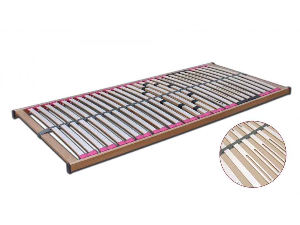 Pevný lamelový rošt s 28 lamelami. Pružné lamely v 5 anatomických zónách uložené ve dvojitých kaučukových pouzdrech reagují na zátěž těla odlišně v různých částech lůžka. V oblasti hrudníku je 5 lamel s možností nastavení tuhosti pružení podle hmotnosti uživatele. V oblasti ramen jsou lamely podélně prořezány pro větší pružnost a komfortnější spánek na boku. Středový popruh zajišťuje zvýšenou stabilitu roštu. Tento rošt je vhodný pro všechny typy matrací. Celková výška roštu je 5 cm. Nosnost roštu je do 120 kg.Doplňkové parametry