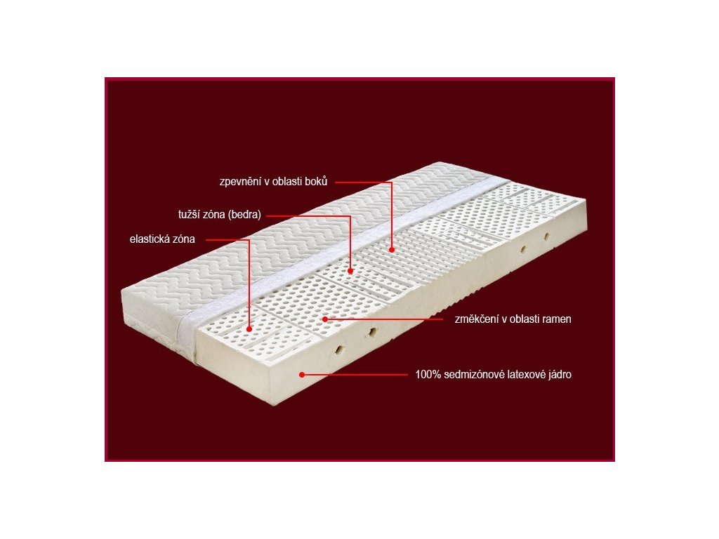 Luxusní 100% latexová matrace s anatomickým rozdělením do 7 zón pro maximální pohodlí.