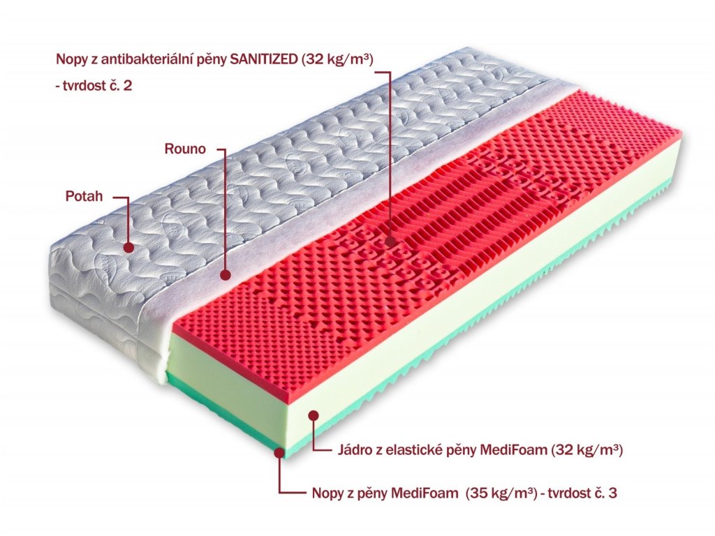 Výkonná matrace s pěnou MediFoam a antibakteriální ložnou plochou - Získáte dokonalou podporu a hygienu pro váš spánek.