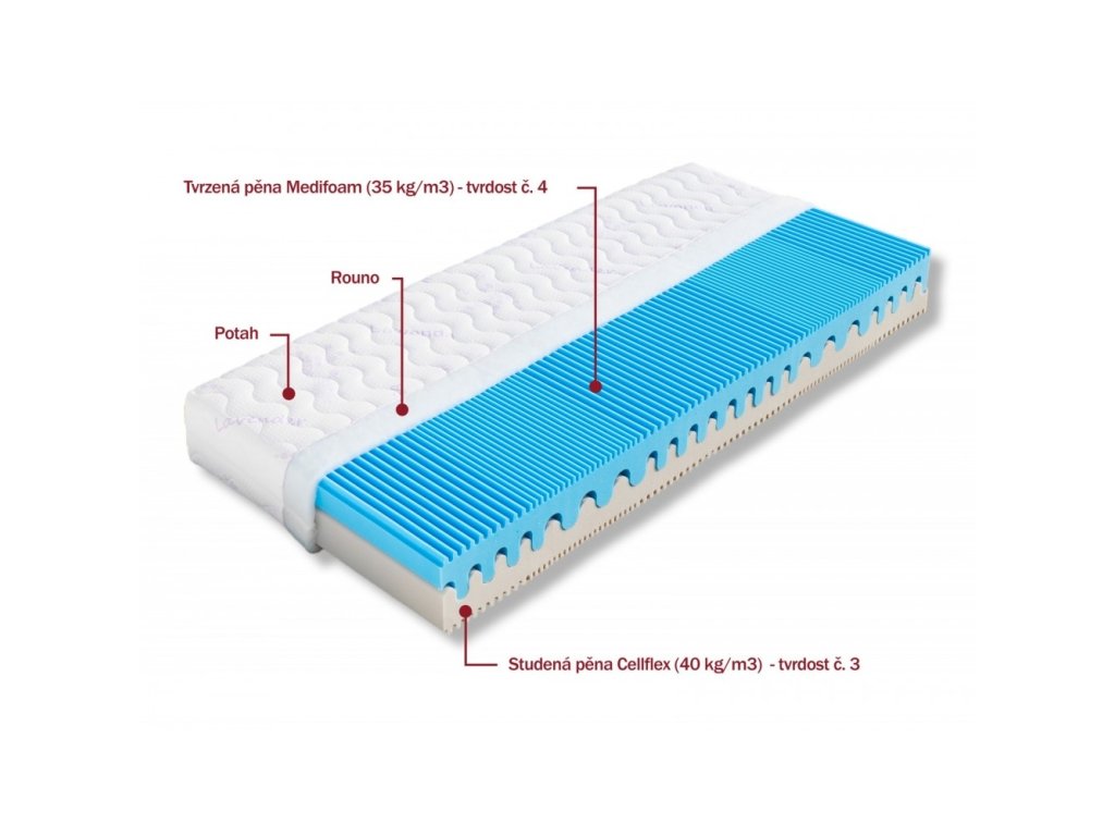 Pevnější strana (tvrdost č. 4) je vyrobena z modré pěny MediFoam (35 kg/m³), která nabízí stabilní a pevnou oporu, ideální zejména pro uživatele s vyššími nároky na tvrdší ležení.