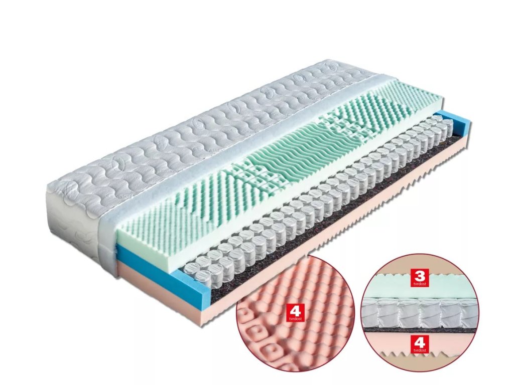 Taštičková matrace s velkým počtem samostatných pružinek obalených v pouzdrech z netkané textilie. Systém taštičkových pružin poskytuje výjimečné pohodlí a podporu těla po celou noc. Vrchní vrstvy tvoří kvalitní pěny MediFoam dvou tuhostí (28 a 30 kg/m³), které jsou tvarovány do masážních nopů. Spojení vzdušného jádra a anatomicky tvarovaných pěn zajišťuje správné tvarování páteře, snižuje tělesný tlak a umožňuje svalům úplné uvolnění. Matrace může být položena na pevnou desku a na všechny typy roštů, kromě motorových.
