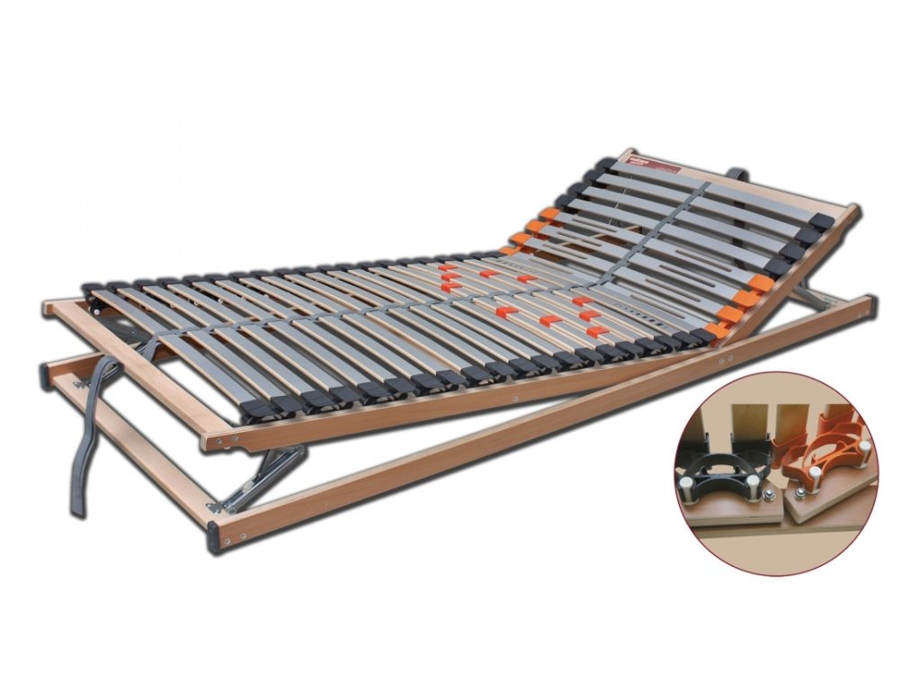 Lamelový rošt s polohováním hlavy a nohou s 28 lamelami uložených v kaučukových pouzdrech. Uložení pouzder nad bočnicí roštu zaručuje vyšší nosnost a dobrou odolnost proti jednorázovému zatížení. Snadnou manipulaci umožňují úchyty na obou koncích roštu. Pevná část roštu mezi polohováním hlavy a nohou nabízí větší plochu pro oporu beder. V oblasti ramen jsou lamely podélně prořezány pro větší pružnost a komfortnější spánek na boku. Rošt má různé úrovně polohování podle potřeb uživatele. Rošt má speciální fóliovou úpravu ke snadné údržbě. Celková výška roštu je 8 cm. Nosnost roštu je do 130 kg.Doplňkové parametry